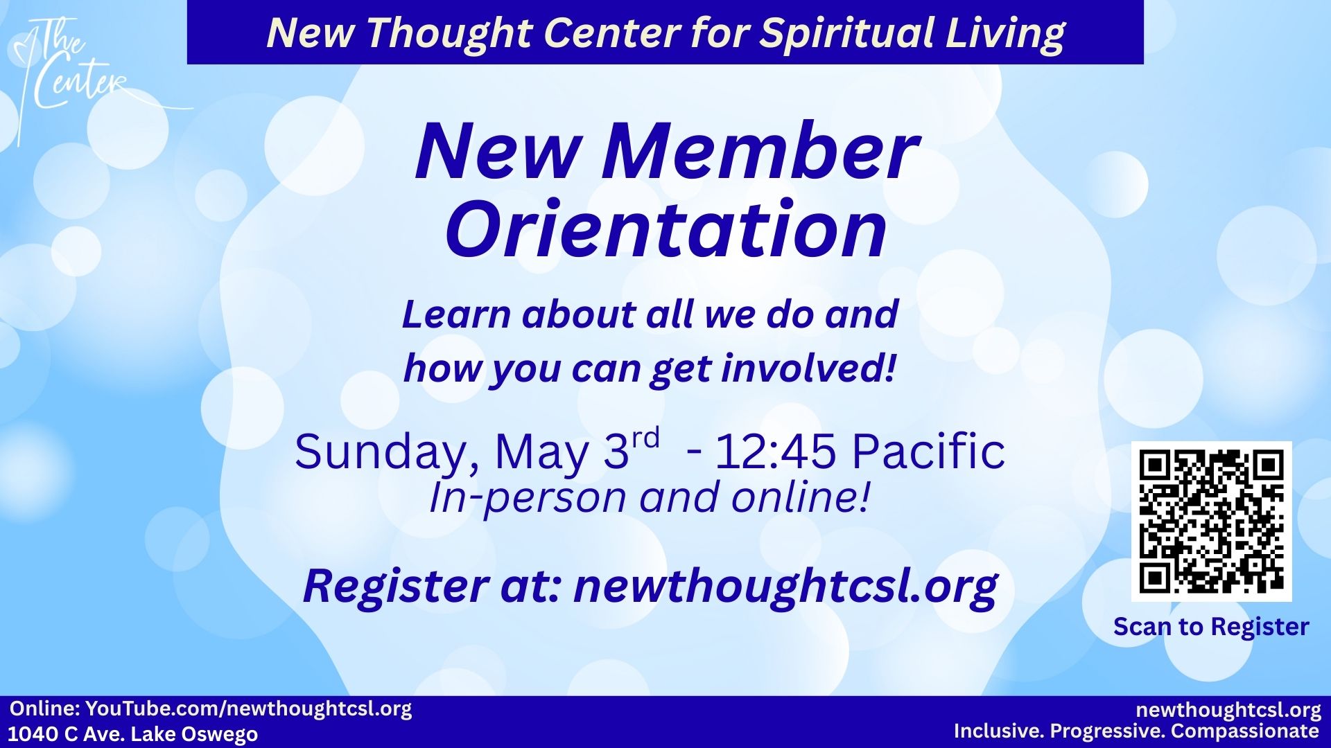 New Member Orientation will be Sunday May 3, 2026 from 12:45-2:00 pm Pacific.